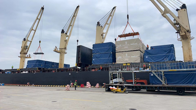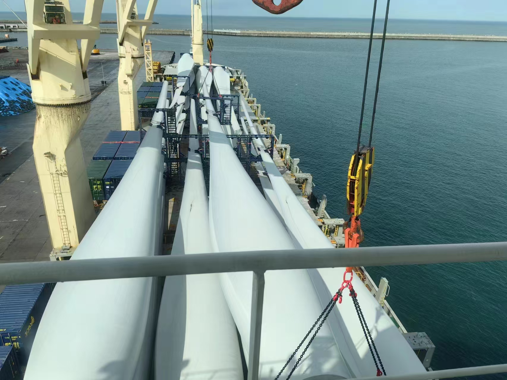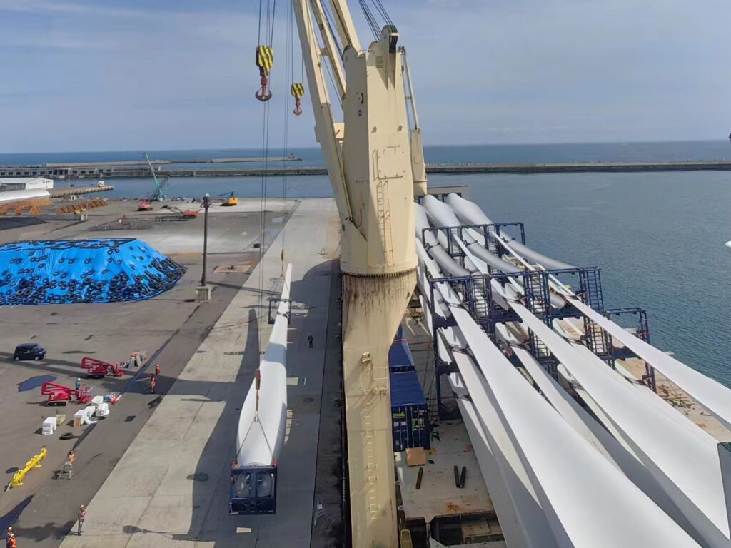We transported wind power generation equipment—including blades, nacelles, and towers—manufactured in China to Aomori Port aboard a 13,000-ton cargo vessel.